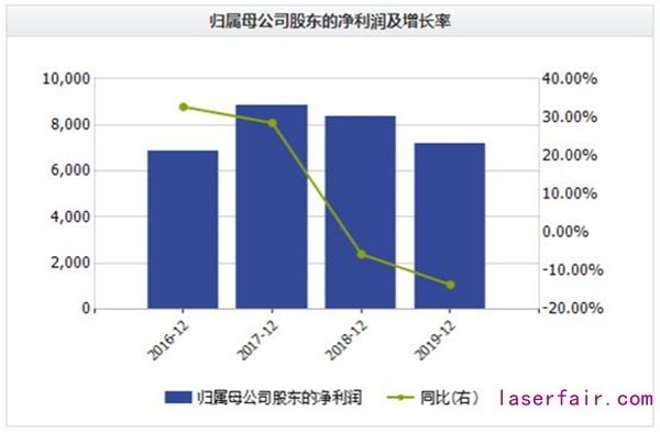 近年來,由于下游新能源行業(yè)政府補(bǔ)貼下降,激光焊接行業(yè)營(yíng)收和利潤(rùn)都受到一定影響,例如行業(yè)龍頭銳科激光2019年歸母凈利潤(rùn)同比下降24.81%、大族激光凈利潤(rùn)同比下降62.63%。聯(lián)贏激光2019年?duì)I業(yè)收入增速為3.02%,歸母凈利潤(rùn)同比下降13.56%,短期內(nèi)受到一定影響。
