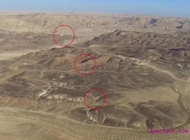 Rafael公司于以色列南部現場演示Drone Dome-L系統期間,多臺無人機襲擊的場景