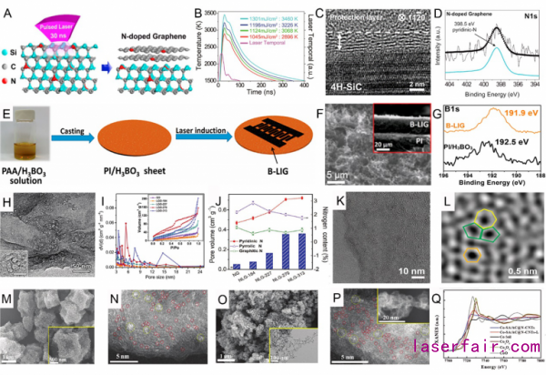 (A-D)激光誘導外延生長N摻雜石墨烯。