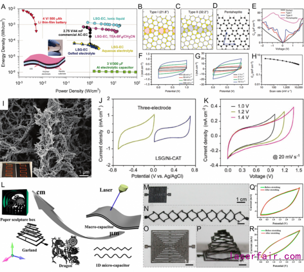 (L-R)激光輔助構筑具有復雜圖案的超級電容器。