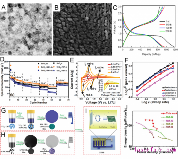 圖10、激光輔助構筑電極材料及器件在可充電電池中的應用