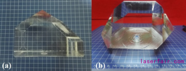 研究團隊分別采用Z向籽晶及定向籽晶快速生長法成功生長出了中等口徑ADP單晶(如圖1)。通過對比研究355nm激光輻照下不同生長方式的ADP晶體的激光誘導損傷特性發現:傳統法生長晶體的質量明顯優于點籽晶快速生長晶體的質量;點籽晶快速生長晶體存在明顯的錐、柱界面質量差異問題;研究表明,ADP晶體中存在三種類型的激光誘導損傷“前驅體”,按照損傷閾值區分其誘導初始損傷閾值的范圍分別為1-5J/cm2(L缺陷)、6-12J/cm2(M缺陷)和>14J/cm2(H缺陷);傳統法生長的ADP晶體中僅存在M缺陷和H缺陷,點籽晶快速生長的ADP晶體中存在三種類型的缺陷;激光預處理能夠部分消除或改性L缺陷和M缺陷,從而提升晶體的激光誘導損傷閾值。通過光譜測試及在線散射測試等手段發現這三種類型的損傷“前驅體”均為一系列缺陷的集合。此研究為ADP晶體以及其他非線性光學晶體的抗激光損傷特性的認知及研究提供重要思路及參考。