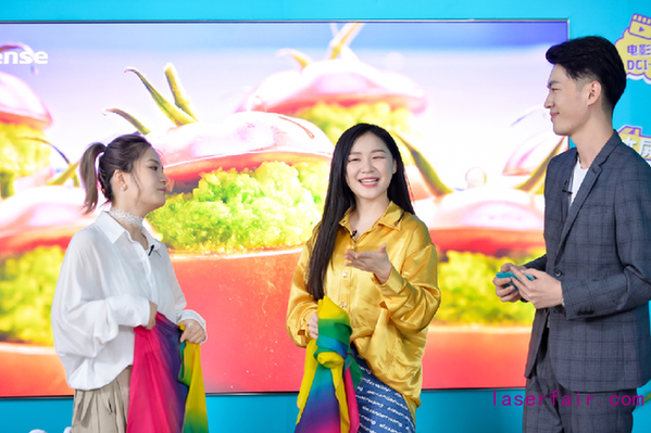 直播中,金靖和劉勝瑛在這臺(tái)最新款的100英寸海信全色激光電視和8k ULED電視面前唱歌跳舞,體驗(yàn)海信電視獨(dú)有的AI智能應(yīng)用。