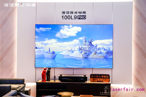 這臺(tái)型號(hào)為100L9-PRO的海信激光電視,剛剛在全球發(fā)布,采用RGB三基色全色光源架構(gòu),色彩純度極高的三原色光源使這臺(tái)激光電視的色域覆蓋達(dá)到DCI-P3電影色彩標(biāo)準(zhǔn)的151%。這是最接近人眼色彩識(shí)別范圍的產(chǎn)品之一,達(dá)到超高清色域標(biāo)準(zhǔn)BT.2020,百萬(wàn)微晶鏡片實(shí)現(xiàn)了20%的像素級(jí)亮度提升,屏前亮度達(dá)到430尼特,并搭配超廣視角100英寸菲涅爾仿生巨幕和哈曼卡頓專屬定制音響,將影院沉浸感和電視高畫質(zhì)融為一體,能讓觀眾沉浸其中。