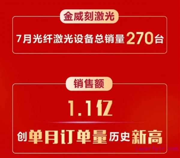 今年,全球遭遇疫情“黑天鵝”,疫情莫大壓力之下,金威刻激光迎風(fēng)前行,2020上半年依然超額完成了業(yè)績指標,呈快速增長之勢,與預(yù)期一致,更是在7月份訂單再創(chuàng)歷史新高,銷售額達1.1億。疫情這塊“磨刀石”見證了金威刻激光的上漲之路,進一步鞏固了其激光加工設(shè)備行業(yè)前列地位。