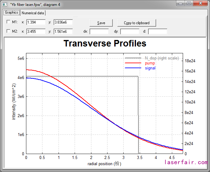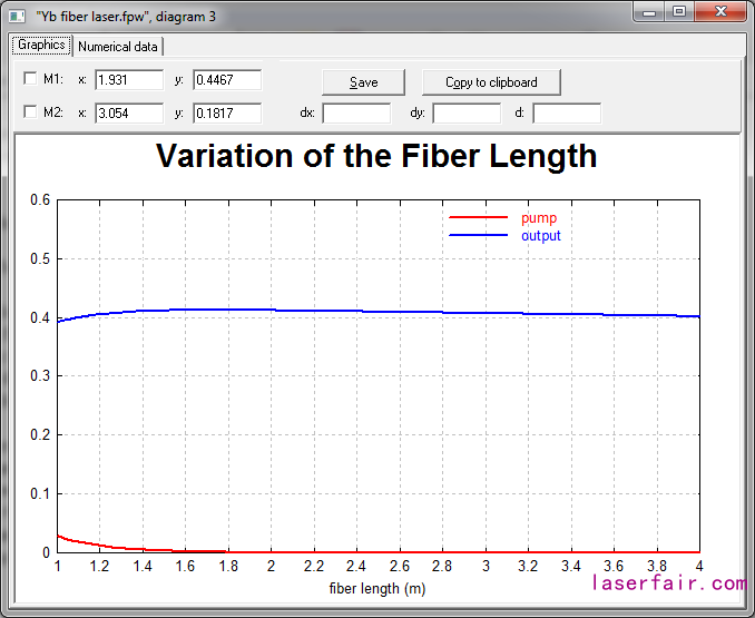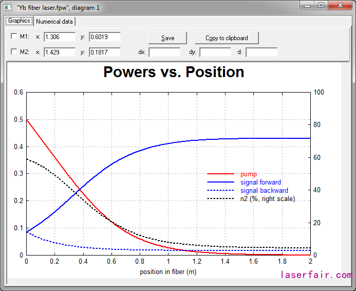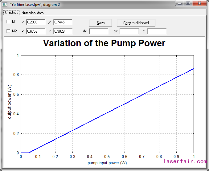 該范例為摻釔光纖激光器的簡(jiǎn)單模型。泵浦與信號(hào)光均在單模光纖內(nèi)傳輸。