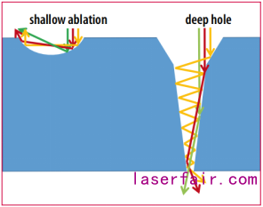 圖1 在淺孔和深孔加工時(shí)的多次反射[1]