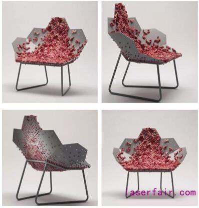 4.丹麥設(shè)計(jì)師SOFIE布倫納設(shè)計(jì)的腮紅椅子。椅子表面使用硬質(zhì)鋁殼制作,并利用激光切割技術(shù)處理座椅表面的穿孔,再配上軟軟的坐墊。整個(gè)設(shè)計(jì)集合了觸覺、感覺和視覺上的藝術(shù)效果。