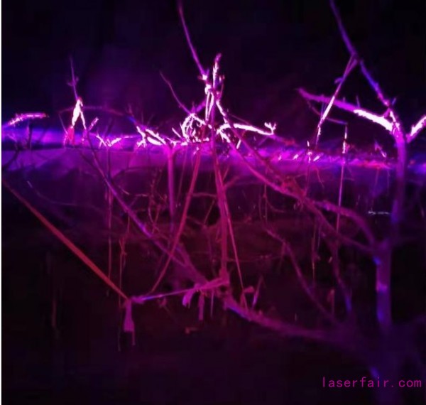 不同顏色的激光,達到的作用也不相同,顏色的取決于激光的波段,比如400-410nm波段的主要體現在殺菌方面,在植物光合作用中450nm-660nm波段的激光吸收率好,根據這一特點,激光植物補光燈就產生了,比如藍光和紅光1:8的配比,應用在葉菜、草本果蔬,讓紅光多一點有利于植物開花和結果,從小苗到成熟結果期都要要補光的。藍光和紅光3:6的配比,在木本作物上,草莓、葡萄等提前上市、減少病蟲害和提高糖度和色澤等功效。