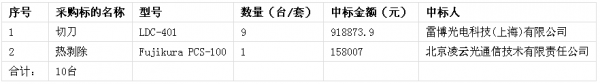 創鑫激光6000-12000W高功率多模光纖激光器產業化項目設備中標公告