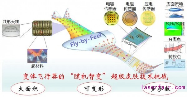 黃永安教授的研究提到,變體飛行器能夠根據不同的飛行任務和飛行環(huán)境改變自身形狀,以獲得最佳的氣動性能,已經成為未來先進飛行器的重要特征和發(fā)展方向。為保證飛行器能夠在飛行過程中可靠變形,必須對表面氣動特性進行測量,包括表面流場、風壓風阻、應變溫度等多物理場的精確測量,并進一步得到分離點、轉捩點等,奠定Fly-by-Feel飛行的技術基礎。