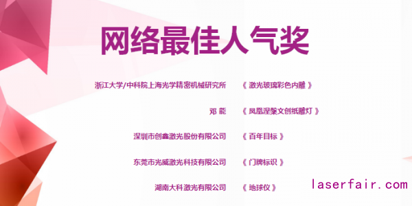 其中,浙江大學/中科院上海光學精密機械研究所邱建榮的作品《激光玻璃彩色內雕》因其高超的技術含量、廣泛的用途、精美細致的工藝等優勢攏聚超高人氣,成為最大贏家,榮獲本次激光文創大賽的金獎、網絡最佳人氣獎、現場最佳人氣獎三大獎項。
