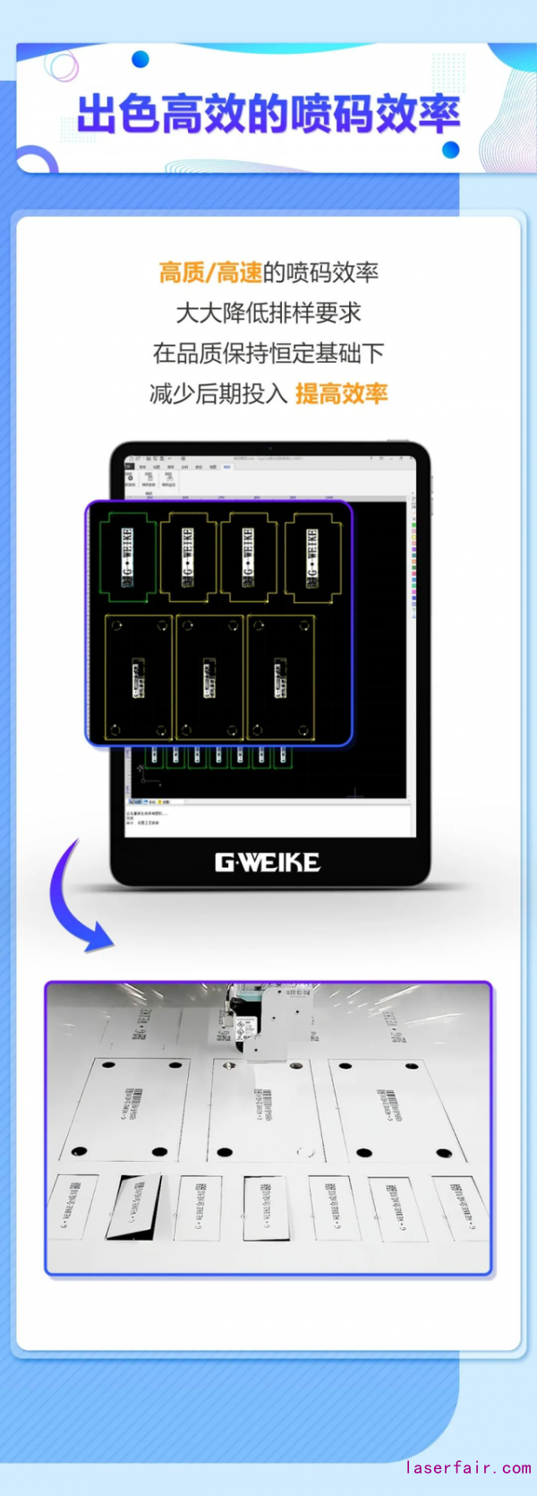 針對以上切割加工痛點,金威刻將激光切割與智能噴碼系統融合為一,金威刻激光噴碼系統是可變數據、高速噴印、防偽,二維碼溯源等應用領域下對切割市場的需求催生的新型噴碼功能。