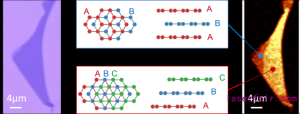 針對上述問題,國防科技大學聯合國內外多家科研單位開展合作,首次在機械解離的三層石墨烯中實現了由激光輻照誘導的從ABC堆垛到ABA堆垛的有序結構相變。實驗結合共聚焦拉曼光譜顯微鏡、光學二次諧波和掃描近場光學顯微鏡等手段詳細研究了相變前后石墨烯的晶體結構和光學特性。