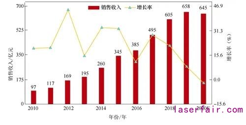激光是20世紀(jì)的一項(xiàng)重大科學(xué)技術(shù)發(fā)明,與原子能、半導(dǎo)體和計(jì)算機(jī)一樣著名。具有亮度高、方向性強(qiáng)、單色性好、相干性好的特點(diǎn),被稱(chēng)為“最快的刀”“最準(zhǔn)的尺”“最亮的光”。在過(guò)去的60年中,與激光有關(guān)的研究獲得了許多諾貝爾獎(jiǎng),充分證明了激光技術(shù)在促進(jìn)尖端科學(xué)研究和促進(jìn)科學(xué)技術(shù)進(jìn)步方面的顯著作用。激光與相關(guān)技術(shù)的融合形成了激光制造,為人類(lèi)改變世界提供了嶄新的工具[1,2]。激光制造技術(shù)具有易操作、非接觸、高柔性、高效率、高質(zhì)量和節(jié)能環(huán)保等突出優(yōu)勢(shì),是切割、焊接、表面處理、高性能復(fù)雜構(gòu)件制造和精密制造的主流手段,被譽(yù)為“萬(wàn)能加工工具”和“未來(lái)制造系統(tǒng)通用的加工手段”,帶動(dòng)了先進(jìn)制造業(yè)的發(fā)展,對(duì)工業(yè)智能化進(jìn)程產(chǎn)生了深遠(yuǎn)影響[1]。激光技術(shù)是一種具有極強(qiáng)的滲透性和加工性的使能技術(shù)。激光技術(shù)支持的經(jīng)濟(jì)規(guī)模遠(yuǎn)大于其自身的經(jīng)濟(jì)規(guī)模。2010年美國(guó)研究報(bào)告指出[3],2009—2010年,美國(guó)電信、電子商務(wù)和信息技術(shù)的總價(jià)值為4萬(wàn)億美元,其中激光器本身的價(jià)值僅為32億美元。因此,激光技術(shù)產(chǎn)品在經(jīng)濟(jì)體系中的重要性遠(yuǎn)超過(guò)了產(chǎn)品本身的價(jià)值規(guī)模。近年來(lái),中國(guó)的激光加工產(chǎn)業(yè)發(fā)展迅速,國(guó)際競(jìng)爭(zhēng)力迅速提高。眾多激光企業(yè)已遍布華東、華南、華北、東北、華中及西部地區(qū)。據(jù)《2019中國(guó)激光產(chǎn)業(yè)發(fā)展報(bào)告》統(tǒng)計(jì),我國(guó)在26個(gè)城市已有激光產(chǎn)業(yè)基地(園區(qū))37個(gè),2011—2018年,激光設(shè)備的銷(xiāo)售收入提高了5倍多,涌現(xiàn)了一批有世界競(jìng)爭(zhēng)力的激光企業(yè)[4]。經(jīng)過(guò)多年的努力,中國(guó)的激光公司已經(jīng)在低端激光行業(yè)樹(shù)立了堅(jiān)實(shí)的立足點(diǎn),但離高端技術(shù)行業(yè)和高端核心組件的世界先進(jìn)水平仍有較大差距。在產(chǎn)品方面,跟隨型產(chǎn)品居多,原創(chuàng)或首創(chuàng)性的高端產(chǎn)品相對(duì)較少。我國(guó)激光技術(shù)科研主要力量集中在科研院所和高等學(xué)校,而企業(yè)相對(duì)薄弱。目前,在我國(guó)與激光相關(guān)的30個(gè)國(guó)家級(jí)研究平臺(tái)中,僅存精密超精密加工國(guó)家工程研究中心和國(guó)家半導(dǎo)體泵浦激光工程技術(shù)研究中心,其他28個(gè)均依托科研院所和高校建設(shè)。高校和科研院所承擔(dān)了大部分國(guó)家計(jì)劃的激光科研項(xiàng)目,而企業(yè)承擔(dān)的只占很小的比例。在過(guò)去的10年中,我國(guó)的激光制造已成為先進(jìn)制造業(yè)中增長(zhǎng)最快的領(lǐng)域之一,形成了一定特色,某些技術(shù)已達(dá)到國(guó)際領(lǐng)先水平。激光加工設(shè)備在促進(jìn)傳統(tǒng)產(chǎn)業(yè)升級(jí)改造中發(fā)揮了關(guān)鍵作用。一群激光加工設(shè)備企業(yè)依靠創(chuàng)新的加工技術(shù)和卓越的設(shè)備質(zhì)量在新舊動(dòng)能轉(zhuǎn)換市場(chǎng)中找到足夠的訂單來(lái)快速增長(zhǎng)。此外,一些制造公司已經(jīng)嘗到了升級(jí)和發(fā)展的甜頭,已不滿(mǎn)足于國(guó)內(nèi)垂直整合,而在積極探索跨國(guó)并購(gòu)國(guó)外優(yōu)質(zhì)激光企業(yè)資源,并計(jì)劃進(jìn)入精密加工領(lǐng)域。在過(guò)去的10年中,激光加工站一直是設(shè)備企業(yè)提供外延服務(wù)的重要觸角,通過(guò)開(kāi)展陣地服務(wù),及時(shí)滿(mǎn)足各類(lèi)加工需求,增強(qiáng)客戶(hù)黏度。如今,越來(lái)越多集多功能于一體的大型設(shè)備已被開(kāi)發(fā)并應(yīng)用于軌道交通、航空航天、船舶制造等行業(yè)。預(yù)計(jì)到2020年,基于工業(yè)互聯(lián)網(wǎng)的各類(lèi)云制造平臺(tái)將逐漸釋放價(jià)值,激光加工站將在云制造平臺(tái)的支持下發(fā)揮出更大的功用,并沿著“一帶一路”走進(jìn)東南亞、中東、南美等多個(gè)地區(qū)。在經(jīng)歷了2017—2018年的快速增長(zhǎng)之后,中國(guó)的激光市場(chǎng)在2019年進(jìn)入了一個(gè)相對(duì)穩(wěn)定的時(shí)期。2019年中國(guó)工業(yè)激光市場(chǎng)的發(fā)展開(kāi)始影響全球工業(yè)激光經(jīng)營(yíng)收入。一方面,日益激烈的價(jià)格競(jìng)爭(zhēng)導(dǎo)致光纖激光器和超快激光器的價(jià)格急劇下降,但國(guó)產(chǎn)設(shè)備的質(zhì)量、技術(shù)和服務(wù)在競(jìng)爭(zhēng)中逐步得到改善,國(guó)產(chǎn)激光產(chǎn)品的興起正在逐步取代進(jìn)口激光產(chǎn)品;另一方面,激光技術(shù)的應(yīng)用比許多傳統(tǒng)制造技術(shù)更具成本效益,從而使激光應(yīng)用迅速普及。2019年激光設(shè)備(含進(jìn)口)市場(chǎng)銷(xiāo)售總收入為658億元,比2018年增長(zhǎng)8.8%。受全球經(jīng)濟(jì)走勢(shì)不確定的影響,預(yù)計(jì)2020年中國(guó)激光設(shè)備市場(chǎng)整體銷(xiāo)售收入將受到很大影響(見(jiàn)圖1)。2019年,國(guó)