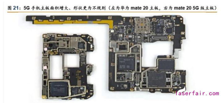 新款創新力度加大,有望再度催生產線設備更新需求。以上關于屏幕尺寸和面積的改變、 藍寶石使用的增加均有望帶動產線激光加工設備的更新換代,從而傳導至公司小功率板塊訂 單量的增長。此外,由于 5G 手機技術需求的提升,機身內部元器件數量大幅增加,使手機 PCB 主板面積增大且形狀的不規則帶動加工的進一步柔性化,預計該部分變化將帶動公司 PCB 加工設備需求的增長。
