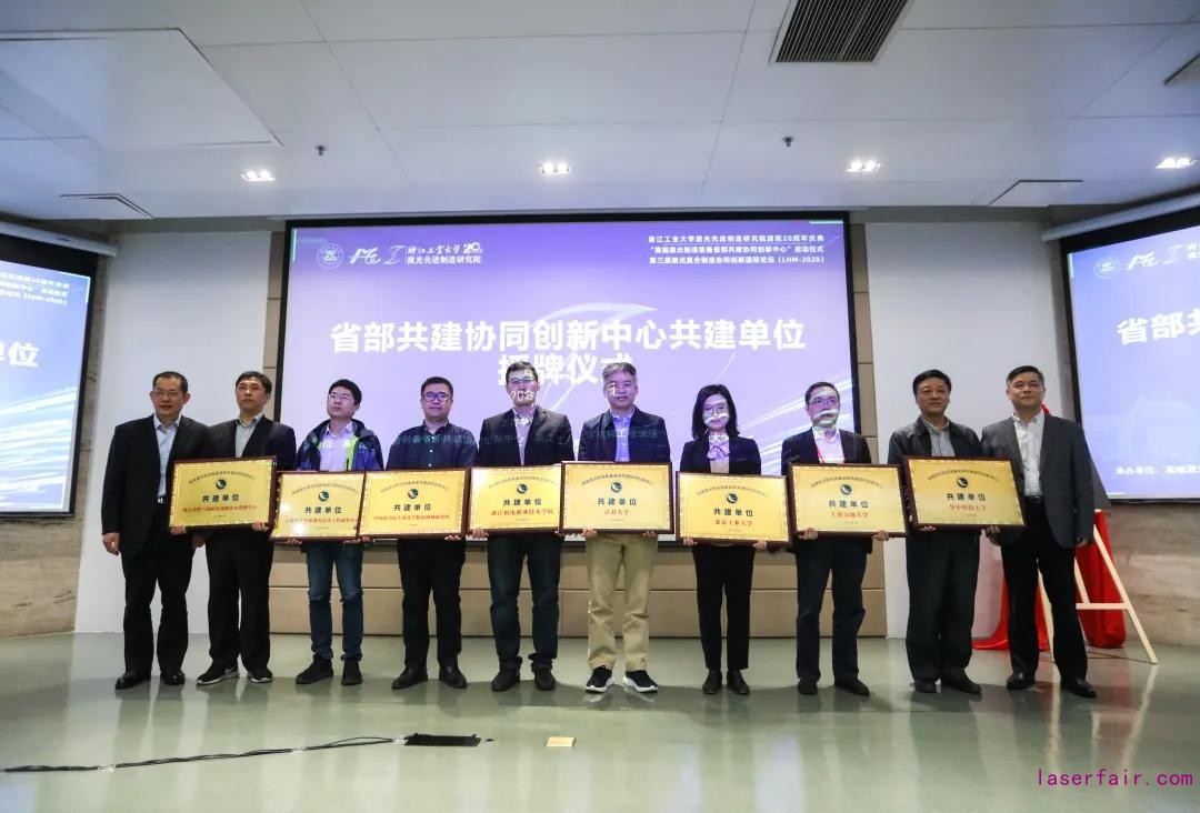 隨后,舉行了高端激光制造裝備省部共建協同創(chuàng)新中心啟動儀式。高端激光制造裝備協同創(chuàng)新中心于2013年獲批省級協同創(chuàng)新中心,于2019年教育部發(fā)文認定為省部共建協同創(chuàng)新中心,由浙江工業(yè)大學牽頭,由華中科技大學、上海交通大學、北京工業(yè)大學、江蘇大學、浙江機電職業(yè)技術學院、烏克蘭國立科技大學、劍橋大學、美國內布拉斯加林肯大學、加拿大卡爾頓大學、中國科學院上海光學精密機械研究所、吉林省半導體激光技術工程研究中心、浙江省燃氣渦輪機械制造業(yè)創(chuàng)新中心、上海電氣電站設備有限公司、杭州汽輪機股份有限公司、江蘇亞威機床有限公司、巨化集團有限公司、洛陽軸承研究所有限公司、奔騰激光(溫州)有限公司、南京中科煜宸激光有限公司、蘇州長光華芯光電技術有限公司、北京熱刺激光技術有限責任公司、杭州銀湖激光科技有限公司、杭州博華激光技術有限公司23家單位參與共建。啟動儀式上,浙江省教育廳高教處處長呂華、浙江工業(yè)大學副校長鄭華均為“高端激光制造裝備省部共建協同創(chuàng)新中心”揭牌。隨后為華中科技大學、上海交通大學、杭州汽輪機股份有限公司等19家國內共建單位授牌,并合影留念。