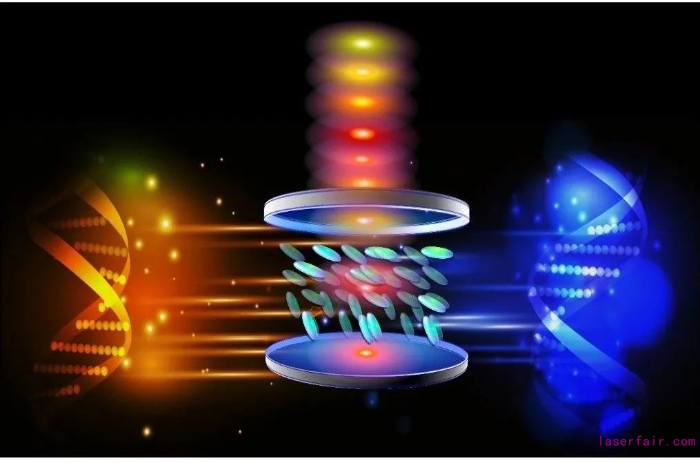 圖2 DNA分子與液晶的交互作用,激光可以有效地在時(shí)域上變換輸出不同發(fā)光波長(zhǎng)