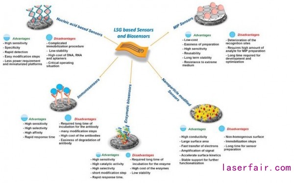 激光衍生石墨烯(LDG) 電化學傳感器和生物傳感器的優點和缺點的圖形化表示