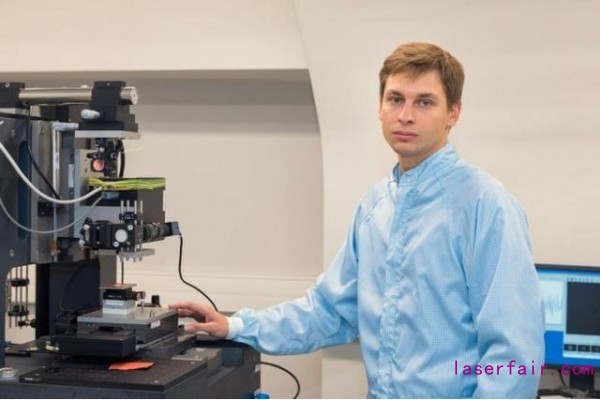 Artem Sinelnik 在具有納米打印精度的實驗設備前