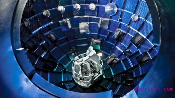 在美國國家點火裝置的目標艙內,192束激光束集中在花椒大小的聚變燃料芯塊上。圖片來源:LAWRENCE LIVERMORE NATIonAL LABORATORY