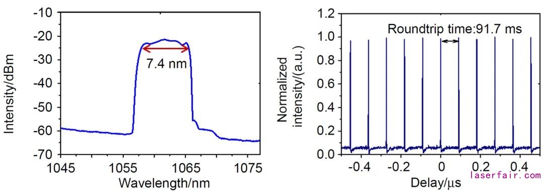 圖2 腔內高階模式振蕩輸出的鎖模光譜和脈沖序列
