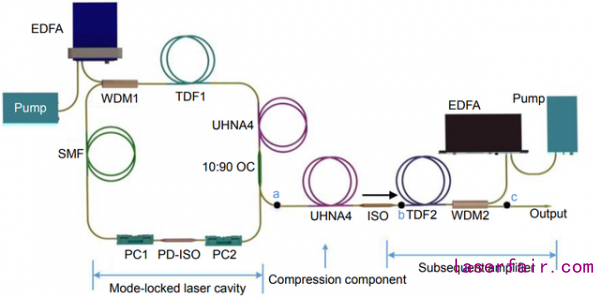 針對上述問題,長春理工大學王天樞教授課題組系統地研究了全光纖諧振腔中多種2 μm高能量鎖模超短脈沖的產生及輸出特性優化方法。研究人員詳細討論了商用化超高數值孔徑光纖對2 μm常規孤子脈沖、展寬脈沖和類噪聲脈沖的產生及優化作用,可實現2 μm波段高可靠性的數百飛秒脈寬、納焦耳量級單脈沖能量超短脈沖的諧振腔直接輸出,并在此基礎上提出了一種腔外全光纖類啁啾脈沖放大結構,適用于2 μm超短脈沖脈寬精確測試。