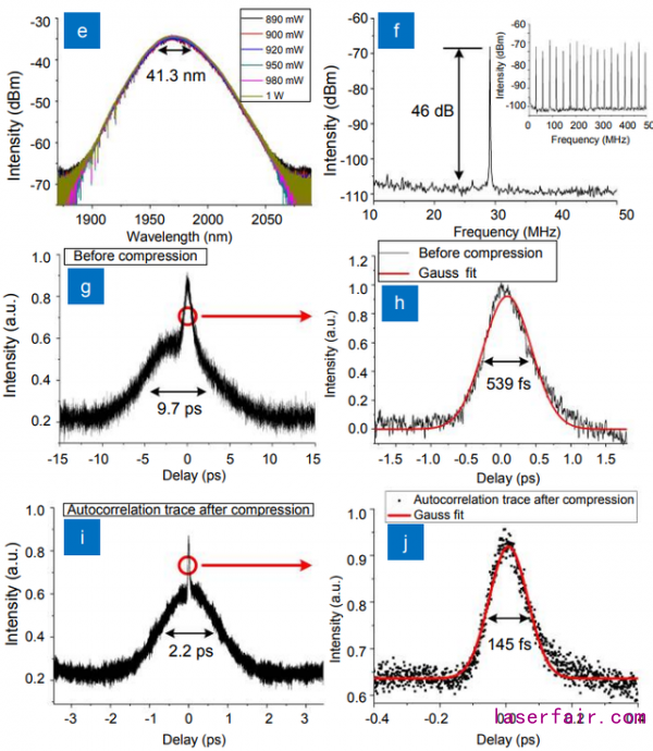 圖3 2μm百fs類噪聲脈沖的產生及優化