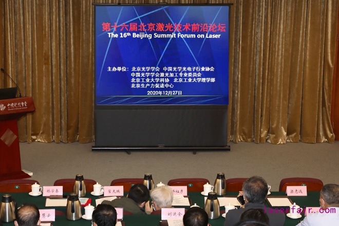 為促進我國激光技術(shù)及產(chǎn)業(yè)的發(fā)展,北京光學(xué)學(xué)會與中國光學(xué)光電子行業(yè)協(xié)會、中國光學(xué)學(xué)會激光加工專業(yè)委員會、北京工業(yè)大學(xué)科協(xié)、北京工業(yè)大學(xué)理學(xué)部、北京生產(chǎn)力促進中心六單位合作,于2020年12月27日在北京中國科技會堂B105報告廳成功舉辦“第十六屆北京激光技術(shù)前沿論壇”。北京光學(xué)學(xué)會理事長許祖彥院士,學(xué)會顧問梁志遠(yuǎn)教授,常務(wù)副理事長翟天瑞教授,副理事長兼專家委員會主任郭少陵,副理事長林學(xué)春、鄭小平、劉運全、姜東升,秘書長劉寶勝、副秘書長林延?xùn)|、高偉男、曹良才,監(jiān)事長滿春陽,北京生產(chǎn)力促進中心總工劉平、中國光學(xué)光電子行業(yè)協(xié)會副秘書長程慧云等,與來自首都從事激光技術(shù)研究的科研院所、大專院校的專家、學(xué)者,激光產(chǎn)品生產(chǎn)、使用單位的專家和企業(yè)負(fù)責(zé)人,以及首都激光界、制造業(yè)人士60余人出席了本屆論壇。同時本屆論壇開通了騰訊會議,通過線上線下結(jié)合的方式,讓眾多因疫情影響不便現(xiàn)場參會的會員在線上觀摩參與。