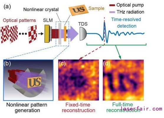 時間分辨率非線性鬼照相相機使用非線性的晶體來將標(biāo)準(zhǔn)的激光轉(zhuǎn)換成THz的模式,使得采用單個的THz像素構(gòu)建成復(fù)雜的物體