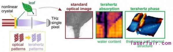 新型光子學(xué)實驗室的團隊使用一個單像素的相機,利用THz光的模式來對物體進行影像。他們構(gòu)建的原型可以探測出目標(biāo)物體在THz光的不同模式下是如何變化的。通過綜合每一原始模式形狀的這一信息,相機可以揭示出目標(biāo)物體的圖像以及其化學(xué)成分。