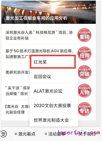 2)微信:關注“激光制造網”微信訂閱號,在菜單按鈕找到【紅光獎】,進入報名端口。