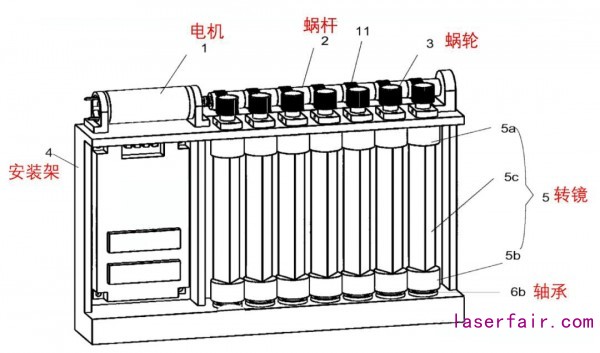 解決方案:將掃描鏡分解成多個子轉鏡,并配合電機、蝸桿、渦輪、軸承等一系列機構。