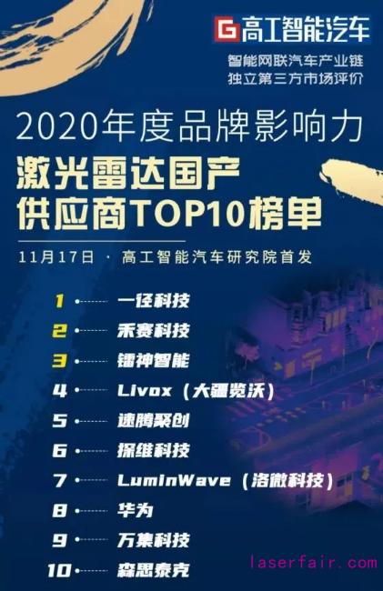 《榜單發布!國產激光雷達TOP10》,作者:高工榜單