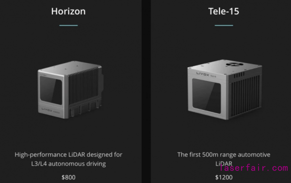 無人機巨頭大疆科技孵化的Livox(覽沃)成立于2016年,可以說是今年國內激光雷達領域的一匹“價格”黑馬。千元級低成本激光雷達成為市場關注的焦點,Horizon的價格為800美元,Tele-15的價格為1200美元,開創了激光雷達性價比的新高。