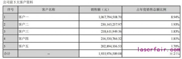 雖然大族激光持續推進大客戶戰略,但并不是過度依賴單一客戶,2020年公司前五大客戶銷售額占比僅為16.21%,分散度較好。
