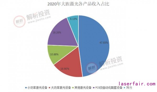 小功率激光設備主要應用于消費電子領域,公司在該領域主要客戶包括蘋果、華為等著名廠商。也正是得益于消費電子行業的復蘇,2020年公司小功率激光打標、精密焊接、精密切割等業務實現營業收入57.12億元,同比增長61.78%。