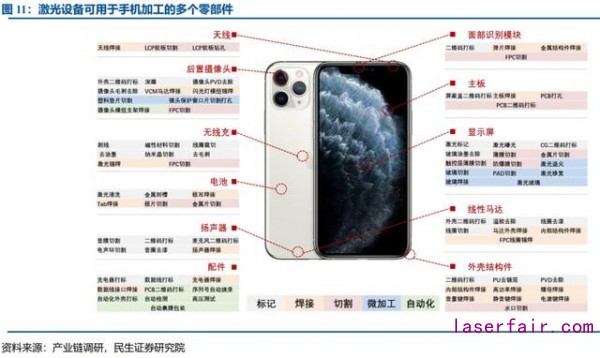 就拿手機來講,90%的零部件需要激光加工,制造中超過20種不同工藝的制造環節都用到激光技術及相關制造設備。消費電子的不斷創新或成為小功率激光設備主要增長動力。