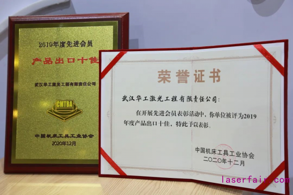 在同期舉辦的2019年度中國(guó)機(jī)床工具工業(yè)協(xié)會(huì)先進(jìn)會(huì)員(十佳)評(píng)選活動(dòng)中,根據(jù)企業(yè)年報(bào)數(shù)據(jù)、專(zhuān)家資料審核以及用戶(hù)應(yīng)用情況審核等綜合評(píng)審,華工激光榮獲“產(chǎn)品出口十佳”稱(chēng)號(hào)。