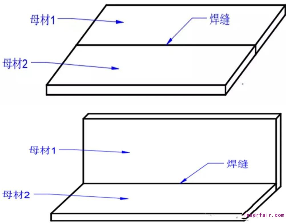 如圖3所示,產品的焊縫形狀為直線狀,接頭形式為對接接頭、搭接接頭、陰角角縫接頭或者疊焊接頭均可,此類型的產品均是采用圖1所示的旁軸側吹保護氣體方式為佳。