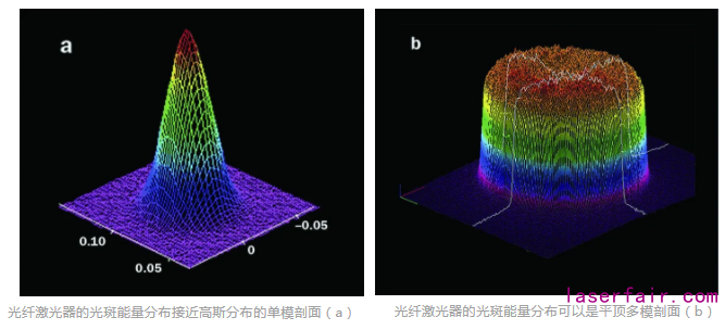 單模連續(xù)波激光器具有近變形限制光束質(zhì)量,可用于工業(yè)應(yīng)用,要求平均功率高達(dá)10kW,最小光斑尺寸在25μm-30μm范圍內(nèi)。高亮度多模激光器的輸出光纖芯徑在50μm-600μm范圍內(nèi),光束質(zhì)量從2mm×mrad開始。所激發(fā)光束的能量分布近似高斯分布或平頂分布,核心直徑可達(dá)1mm。