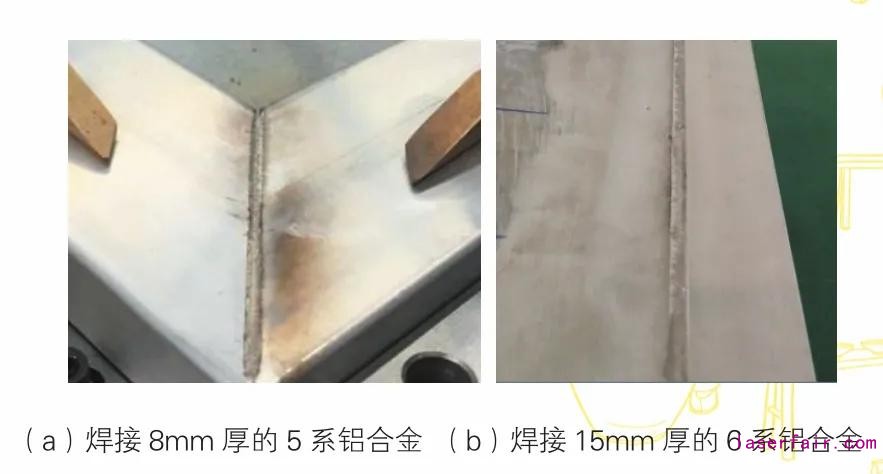 對于鋁合金厚板的焊接,采用單一激光作為熱源很難達到理想效果,目前行業(yè)企業(yè)基本上采用傳統(tǒng)電弧焊的焊接方式,需要開坡口,多層多道焊接,生產(chǎn)效率低下,工作強度大,焊接變形大,難以保證焊縫質(zhì)量。鍇軼激光與林肯電氣共同推出的激光-MIG電弧復(fù)合焊接(圖7)則很好地解決了這一痛點。