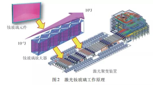 激光釹玻璃是一種含有稀土發(fā)光離子———釹離子的特殊玻璃,它可以在“泵浦光”激發(fā)下產(chǎn)生激光或放大激光能量,是激光器的“心臟”,也是目前人類所知的地球上能夠輸出最大能量的激光工作介質(zhì),數(shù)千片大尺寸高品質(zhì)釹玻璃能將種子光( 焦納爾級(jí) 10 ^- 9 ) 迅速放大到小太陽量級(jí)( 兆焦耳級(jí) 10^6) ,實(shí)現(xiàn)聚變反應(yīng)。