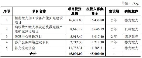 募資4.5億元投建激光設(shè)備等項(xiàng)目