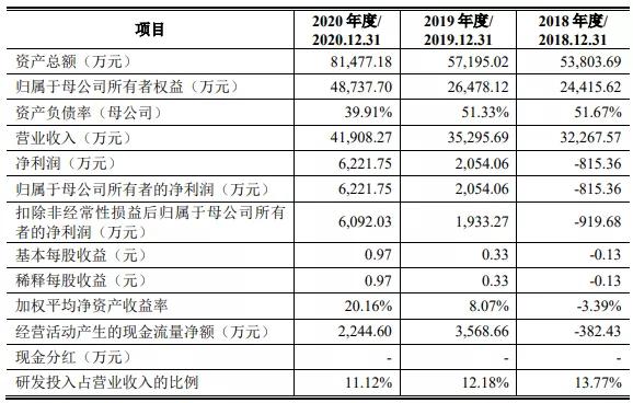 2018-2020年,德龍激光實(shí)現(xiàn)營(yíng)業(yè)收入分別為3.23億元、3.53億元、4.19億元,對(duì)應(yīng)的凈利潤(rùn)分別為-815.36萬(wàn)元、2054.06萬(wàn)元、6221.75萬(wàn)元。