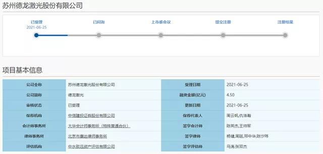 6月25日,上交所正式受理了蘇州德龍激光股份有限公司(以下簡(jiǎn)稱(chēng):德龍激光)科創(chuàng)板上市申請(qǐng)。