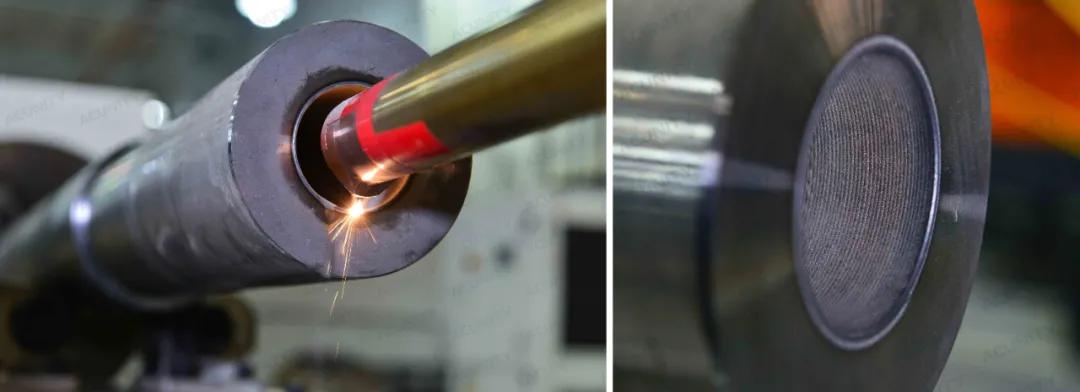 一些細小孔徑的模具產品,限制了傳統內壁堆焊設備的進入。亞琛聯合科技(天津)有限公司采用自主研發適用于小孔徑零件的內壁激光熔覆頭,成功實現了零件內壁的高性能耐蝕耐磨涂層制備,極大提高了產品在復雜工況下的服役壽命。