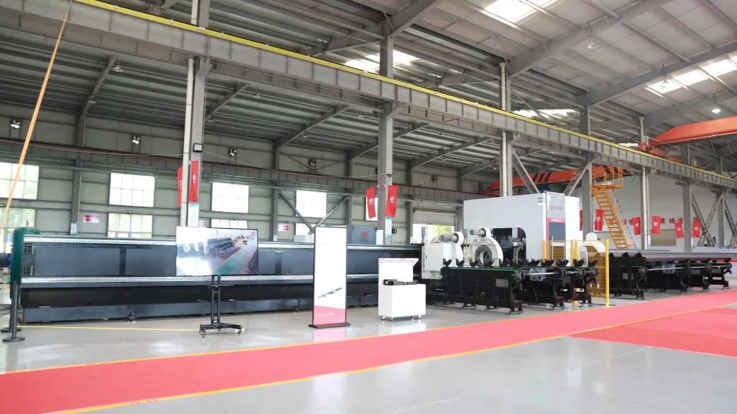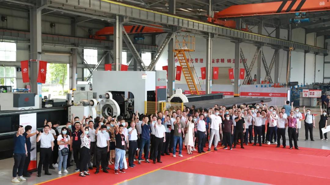 7月10日,華工激光舉辦工廠開放日暨超重管激光三維加工中心全球首發儀式。