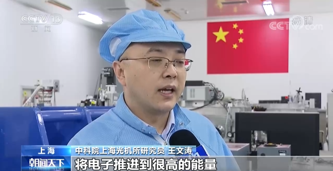 中科院上海光機(jī)所研究員 王文濤:這個就是我們整個裝置的核心,激光尾場電子加速器,它可以在很短距離內(nèi)將電子推進(jìn)到很高能量。