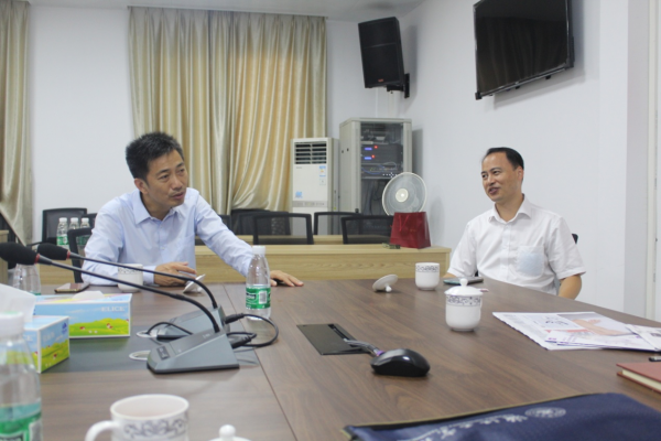 廣東省激協秘書長邵火(左) 與清遠市科技局副局長楊勇熱情交流